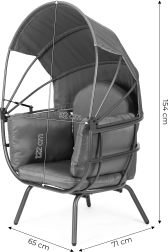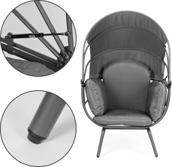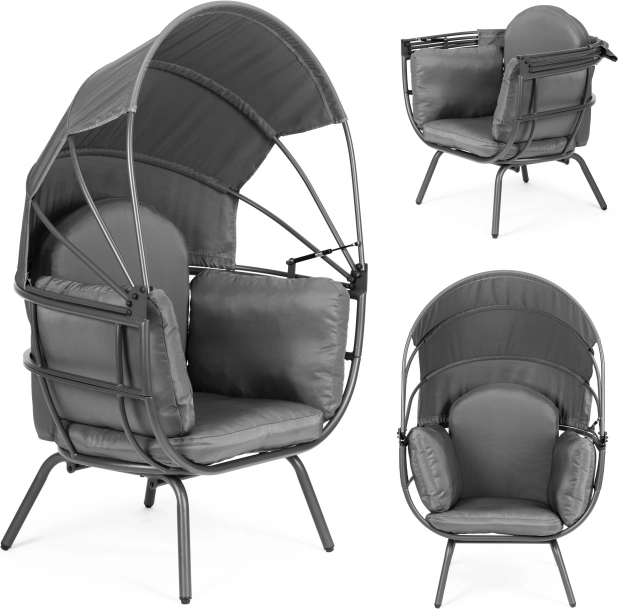 Stabil és szilárd acél szerkezet biztosítja a biztonságot és a kényelmet. A nagy összehajtható tető kellemes árnyékot nyújt a forró napokon, és véd a széllökésektől. Olvasás, napozás vagy pihenés a szabadban soha nem lesz ugyanaz.