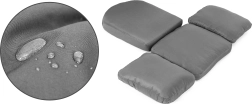 A maximális kényelem érdekében a kerti székhez négy párna tartozik. Ezek a párnák nem csak kényelmesek, hanem mindenféle időjárási körülményeknek ellenállnak. Az anyag könnyen kezelhető és gyorsan száradó, cipzárral felszerelt a huzat könnyű eltávolításához mosás céljából.