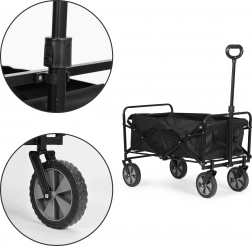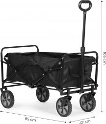 Megbízható kocsit keres mindennapos használatra? Ez az összecsukható szállítókocsi ideális a kertbe, a strandra, parkba és bevásárláshoz. A stabil fém váz, a tágas, 85 × 47 cm-es rakfelület és a 70 kg teherbírás elbírja a szerszámokat, csomagokat és a nagyobb bevásárlást is.