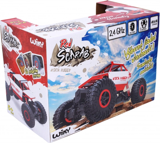 Auto Rock Buggy Vörös Skarabeusz összkerékhajtással és túlméretezett rugózással extrém terepre.
