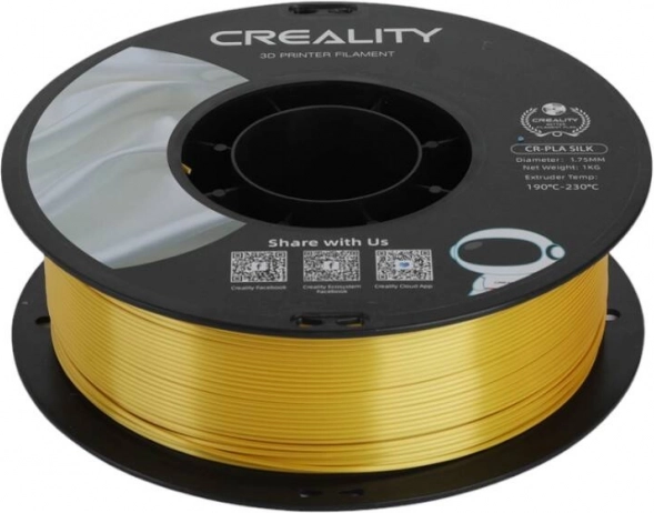 Érjen el sima, luxus megjelenésű 3D nyomatokat a CREALITY CR-Silk PLA arany, elegáns színével. Selymesen fényes felületet kínál polírozás nélkül, könnyű és egyenletes nyomtatást akár 100 mm/s sebességig, alacsony zsugorodást és magas méretstabilitást. Ideális figurákhoz, dekorációkhoz és dizájn prototípusokhoz.