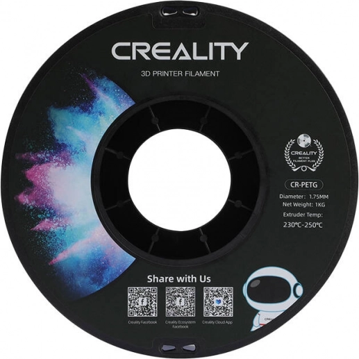 A Creality CR‑PETG minőségi filament mindennapos prototípus-készítéshez és végső alkatrészekhez. A PETG anyag környezetbarát, nem jár erős szagokkal, és az egyenletes 1,75 mm-es átmérőnek köszönhetően stabil anyagadagolást és tiszta rétegeket biztosít.