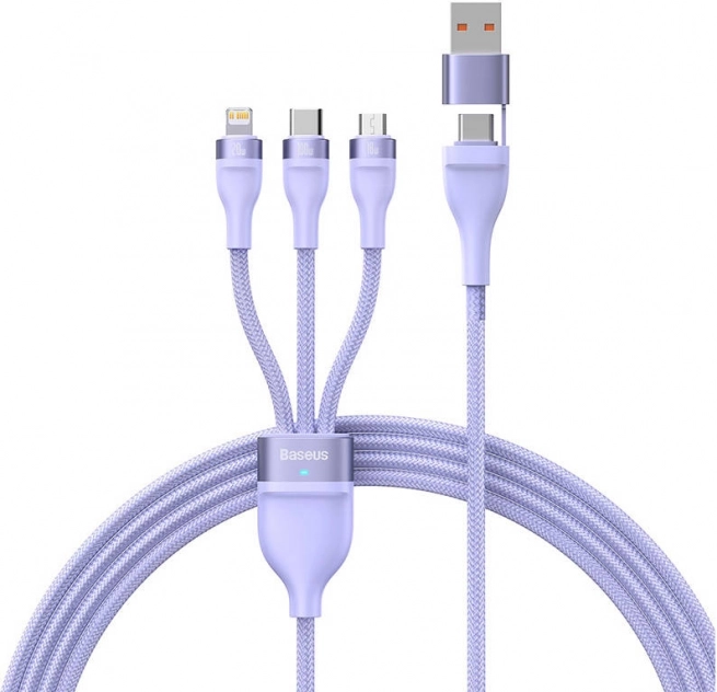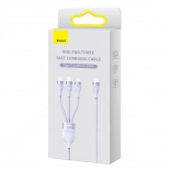 Tapasztalja meg a kényelmet a Baseus 3 az 1-ben töltőkábelével, amely Lightning, USB-C és Micro USB csatlakozókat tartalmaz, a három eszköz egyidejű töltéséhez. Rugalmas használat a kettős USB és USB-C bemeneti portok által.
