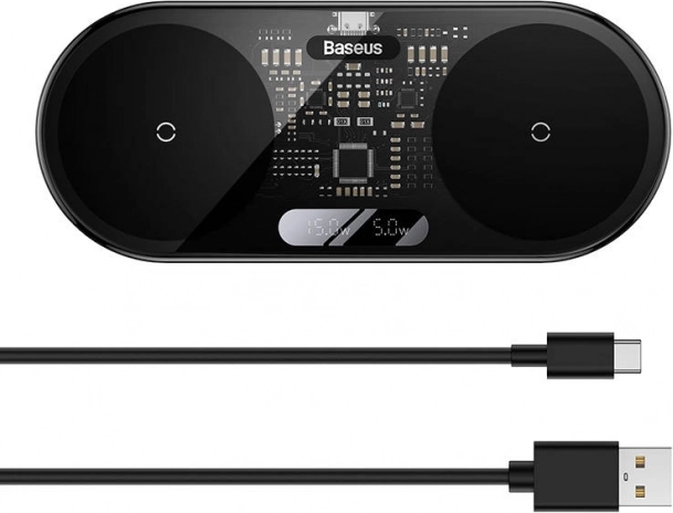 Baseus vezeték nélküli töltő gyors és hatékony töltést biztosít két eszköznek egyszerre, legyen szó iOS vagy Android készülékekről. Fel van szerelve egy digitális LED kijelzővel, ami az aktuális töltési teljesítményt mutatja.