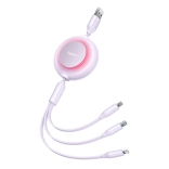 Baseus Bright Mirror II Series kábel három csatlakozóval rendelkezik, amelyek lehetővé teszik különböző eszközök gyors és biztonságos töltését. A Lightning csatlakozó ideális iPhone-okhoz, az USB-C okostelefonokhoz, a mikro USB pedig powerbankokhoz vagy más készülékekhez.