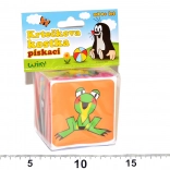 Szórakoztató sípoló kocka a legkisebbeknek a KISVAKOND és barátai kollekcióból, amely örömet okoz élénk színeivel és puha, biztonságos anyagával. Minden oldala más színű, kedvelt szereplőket ábrázol, a kocka megnyomásra sípoló hangot ad, ami fejleszti a baba érzékelését és figyelmét.