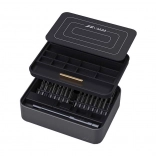 A funkcionális és tágas tok rendezett munkát biztosít. A mágneses alátét megakadályozza a legapróbb fém alkatrészek elvesztését. Ezen felül lehetővé teszi az elemek rendszerezését a munkafelületen, ami megkönnyíti a munkát.