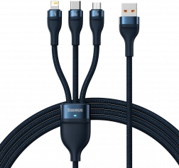 A Baseus kábel egyedülálló kombinációját kínálja a három csatlakozónak - USB-C, Micro USB és Lightning. Ez azt jelenti, hogy akár három különböző eszközt is tölthet egy időben egyetlen kábellel! Akár 66W teljesítménnyel ez a kábel ideális a készülék gyors feltöltéséhez és széles körű kompatibilitást biztosít különböző márkák eszközeivel, mint például Apple, Samsung vagy Xiaomi.
