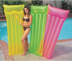 A felfújható matrac tökéletes társ a vízparti nyári napokhoz. Kiváló PVC anyagból készülve nagyszerű stabilitást és kényelmet nyújt használat közben. A 183 x 76 cm-es méret elegendő helyet biztosít a kényelmes pihenéshez.