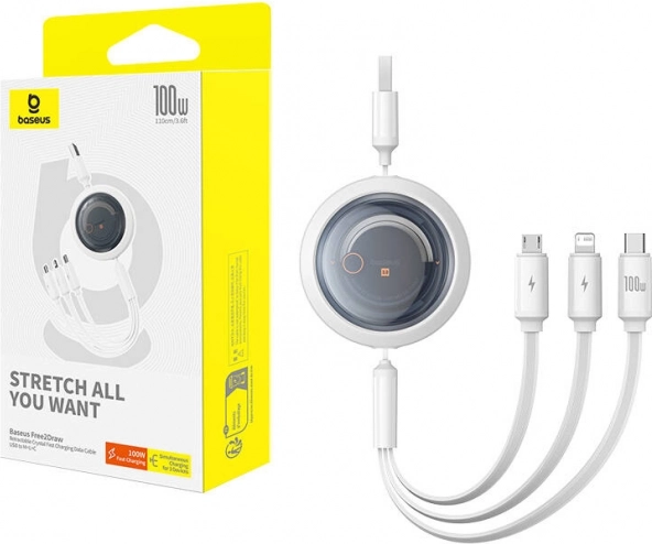 Olyan kábelt keres, amely minden eszközéhez jó? A BASEUS Free2Draw egy okos 3 az 1-ben megoldás USB‑C, Lightning és Micro USB csatlakozóval, amely kezeli a gyors töltést akár 100 W-ig és a stabil, 480 Mb/s adat-szinkronizálást. A kompakt, felcsévélhető kialakítás átlátszó fedéllel modern megjelenést ad, és elfér zsebben vagy táskában.