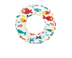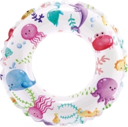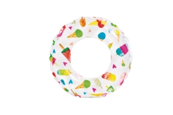 Ez a gyerek felfújható úszógumi tökéletes választás az első vízi élményekhez. A könnyű szerkezet és a strapabíró PVC anyag stabilitást és kényelmet biztosít úszás és pancsolás közben. A vidám halacskás, tengeri élőlényes, fagyis és gyümölcsös minták minden gyermeket felvidítanak, és színesebbé teszik a nyári napokat.