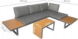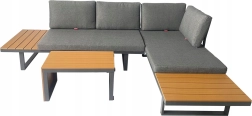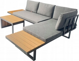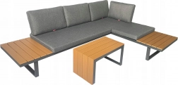 Ezzel a kanapé- és asztalszettel élvezheti a nyugalmat és kényelmet a friss levegőn. A szett egy kanapét és dohányzóasztalt tartalmaz, melyek moduláris kialakításuk révén szabadon konfigurálhatók az igények szerint.
