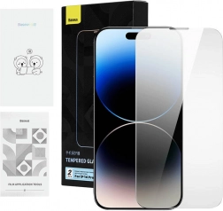 BASEUS privát edzett üveg iPhone 14 Pro Max készülékhez, 2 db telepítő- és tisztítókészlettel