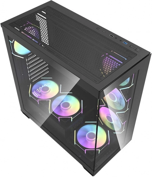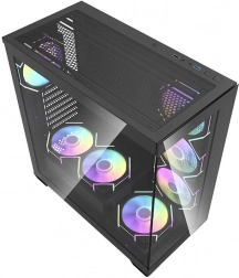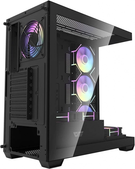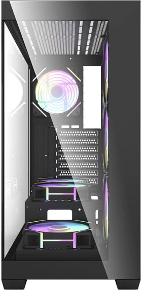 A Darkflash DS900 egy modern midi torony, igényes játékosoknak és tartalomkészítőknek tervezve. A panorámás váz dupla edzett üveggel tiszta rálátást ad a komponensekre és az ARGB megvilágításra, míg a 0,5 mm‑es SPCC masszív felépítés tartósságot és stabilitást biztosít. A csomag része 7× 120 mm‑es ARGB ventilátor az azonnal hatékony hűtéshez és látványos megjelenéshez.