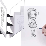 Az optikai rajztábla átlátszó akril panelt használ, amely a telefon vagy táblagép kijelzőjének képét finom körvonalként jeleníti meg a papíron. Csak helyezze a készüléket az állványba, válasszon motívumot és kezdje el az átrajzolást – bonyolult alkalmazások és fényvetítés nélkül. Kompakt A5-ös méreteinek köszönhetően ideális otthonra, iskolába és útra.