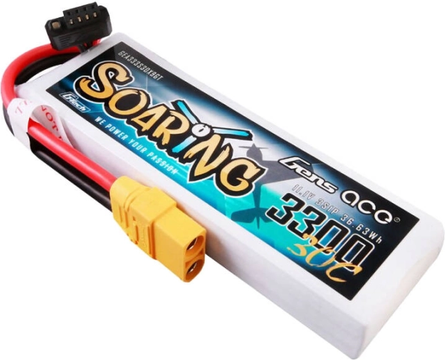 A Gens Ace G-Tech Soaring XT90 csatlakozóval egy speciális energiaforrás, amely repülő modellekhez, például drónokhoz, multirotorokhoz és pilóta nélküli repülőgépekhez készült. A 3300 mAh kapacitású és 11,1 V feszültségű LiPo akkumulátor kiváló teljesítményt és hosszan tartó üzemidőt biztosít, ami fontos a stabil és megszakításmentes tápellátást igénylő alkalmazásokhoz. A 30C kisütési ráta garantálja a szükséges teljesítmény gyors leadását. Az akkumulátor tömege 252 g, méretei 131 x 42,5 x 19,5 mm, ami megkönnyíti a beépítést különféle repülő modellekbe. Az XT90 csatlakozó biztonságos és megbízható kapcsolatot biztosít, míg a JST-XH kiegyenlítő csatlakozó segít az egyes cellák egyenletes töltöttségének fenntartásában. Ideális választás olyan modellekhez, mint az Easy Glider, a Fun Cub és az E-flite.