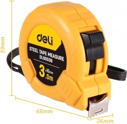 Univerzális Deli mérőszalag 3 méteres hosszúsággal ideális eszköz pontos mérésekhez otthoni és építkezési környezetben is. Strapabíró kivitel automatikus zárral biztosítja az egyszerű és megbízható használatot.