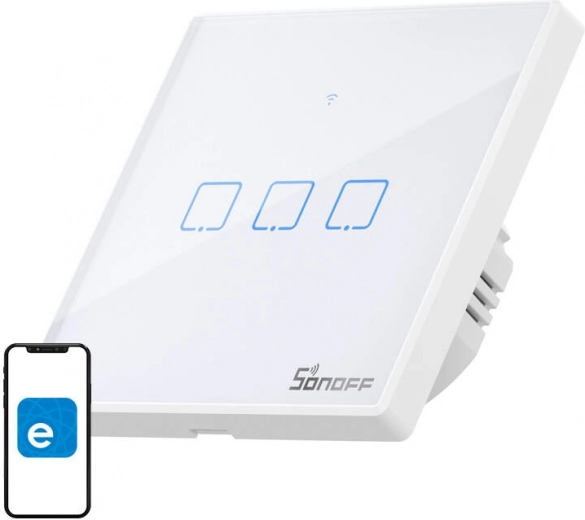 Sonoff T2 EU TX intelligens megoldást kínál az otthona világításának vezérléséhez. Elegáns fehér dizájnjával és három érintőgombjával ideális választás a modern belső terekhez.