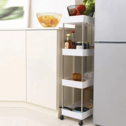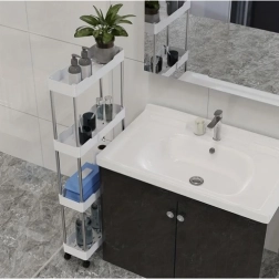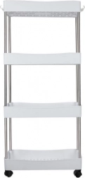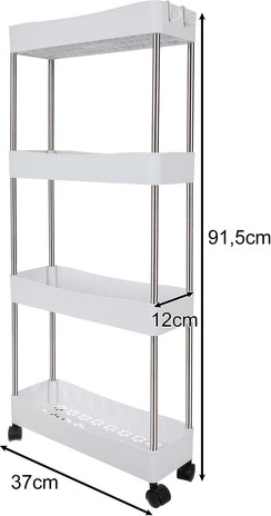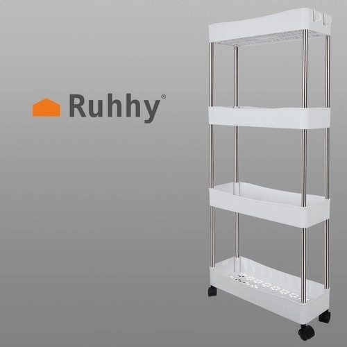 A RUHHY mobil polcos állvány univerzális megoldás helytakarékossághoz keskeny résekben és a háztartás megszokott zónáiban is. Moduláris felépítésének köszönhetően könnyen személyre szabhatja a szintek számát igény szerint, és használhatja a fürdőszobában kozmetikumoknak és tisztítószereknek, a konyhában fűszereknek és palackoknak, a dolgozóban dokumentumoknak vagy a mosókonyhában detergenseknek.