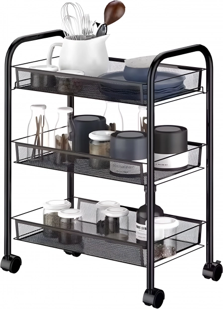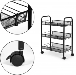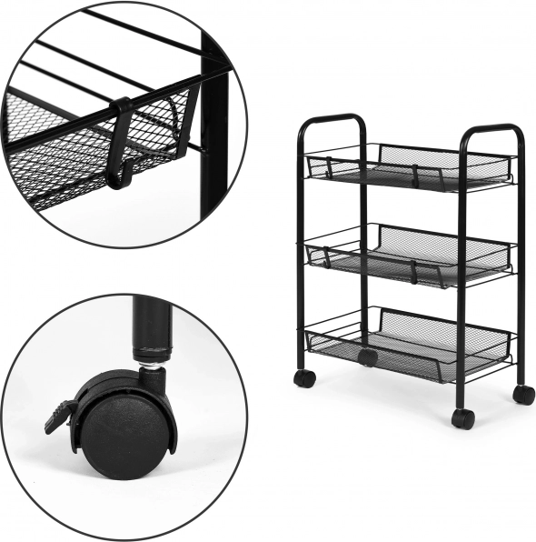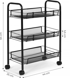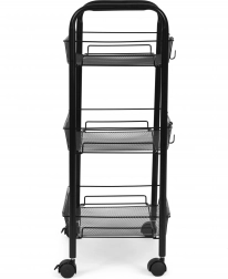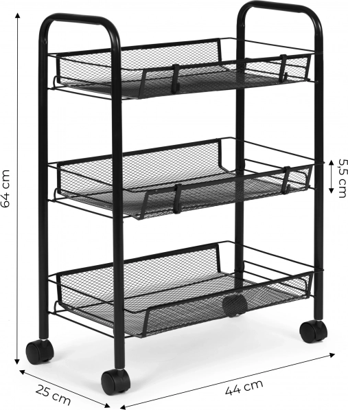 Praktikus és stílusos segítőtárs minden otthonba. Az állvány keskeny kialakítása a nehezebben hozzáférhető helyeket is kihasználja, míg a három tágas kosaras polc elfér rajta a kozmetika, tisztítószerek, fűszerek, edények vagy irodaszerek. A tartós fém stabilitást és hosszú élettartamot biztosít.