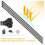 Ezek a fekete nejlon kábelkötegelők széleskörű alkalmazásra alkalmasak otthoni, műhelybeli vagy építkezési feladatok során. Tartós, kopás- és szakadásálló nejlonból készültek. Ellenálló képességüknek köszönhetően beltéren és kültéren egyaránt használhatóak anélkül, hogy kellemetlen szagokat okoznának.