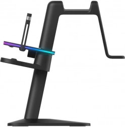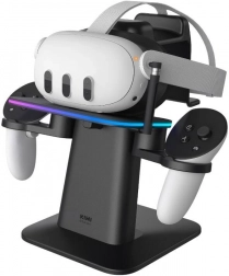 Az elegáns fekete állvány RGB világítással egyesíti a töltést és a VR-szett rendszerezését egyetlen helyen. A mágneses csatlakozó biztonságos és kényelmes áramellátást nyújt a META QUEST szemüvegnek, miközben az oldalsó tartók kéznél tartják a kontrollereket. A 16 fényhatásnak köszönhetően személyre szabhatja játékos sarkának hangulatát.