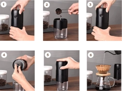 A fokozatmentes szemcseméret‑szabályozással pontosan a saját elkészítési módjához állíthatja az őrlést – a finom espressótól a durvább french pressig. Az USB‑C tápellátás lehetővé teszi a használatot laptopról, power bankról vagy töltőről, így friss kávét készíthet otthon, az irodában és utazás közben is.