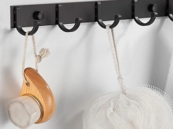 A több akasztó a törölközőknek, szivacsoknak és kiegészítőknek mindent kézközelben és rendezett formában tart. A modern fekete dizájn bármilyen belső teret kiegészít.