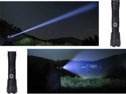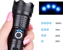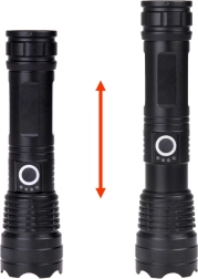 Nagy teljesítményű LED zseblámpa repülőgépipari alumíniumból, erős fényárammal, vízállósággal és 5 világítási móddal minden helyzetre. A USB‑C töltésnek, a ZOOM funkciónak és a 18650 akkumulátorral vagy 3× AAA elemmel történő táplálás lehetőségének köszönhetően ideális kiránduláshoz, kempingezéshez és műhelybe is. Kényelmes, egygombos vezérlés, töltöttségjelző és praktikus tartozékok, beleértve a tokot is, a megbízható használatért otthon és terepen.