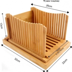 A bambusz kenyérszeletelő lehetővé teszi a kenyér, bagett, tésztafélék stb. egyenletes és biztonságos szeletelését. Nem kell tartania a morzsáktól a pulton, mert tartállyal rendelkezik, amely összegyűjti a morzsákat. A morzsákat könnyedén kiöntheti a tartályból. A kompakt kenyérszeletelő nem foglal sok helyet, így értékes helyet takarít meg a konyhapulton. A szeletelő minőségi bambuszfából készült, amely élelmiszerbiztonságos. A szeletelő speciálisan úgy lett tervezve, hogy egy nagy szeletelő kés is elférjen benne.