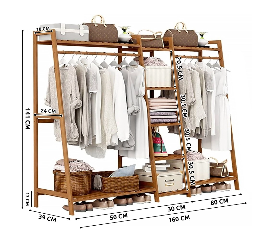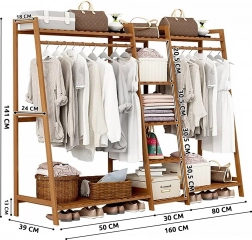 Dupla bambusz ruhafogas 5 polccal – 160 cm hossz.