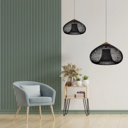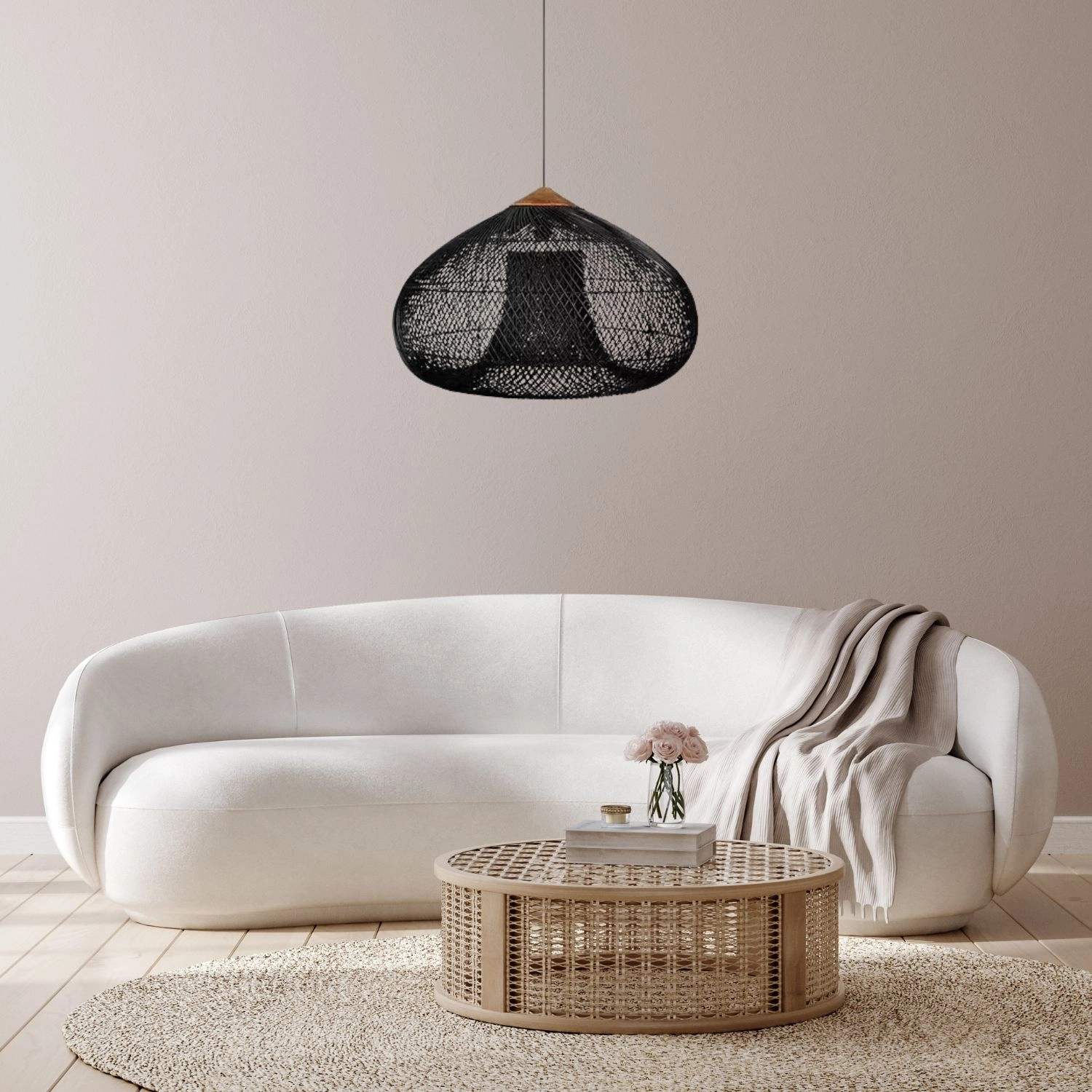 Ez a fekete rattan lámpa a természetes anyagokat modern dizájnnal ötvözi. A kézzel szőtt lámpabúra meleg, otthonos fényt teremt, és remekül működik a nappaliban, étkezőben és hálószobában is. Univerzális megjelenésének köszönhetően könnyen illeszthető a minimalista, skandináv és boho stílushoz.