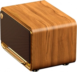 Elegáns fa kivitel retro hangulattal, 12 mm-es MDF ház és rejtett fogantyú a kényelmes hordozáshoz. Akár 12 óra üzemidő egyetlen töltéssel.