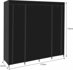 A 170 x 42 x 170 cm-es textil szekrény ideális megoldás azok számára, akik praktikus és hordozható tárolási lehetőséget keresnek. Könnyű anyagának köszönhetően könnyen mozgatható, és jól illeszkedik a korlátozott helyű terekbe.
