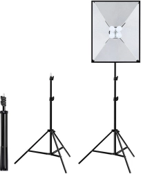 - Stúdióállvány, 50 × 70 cm-es softbox izzótartóval, 4× LED E27 20 W, szállítótáska