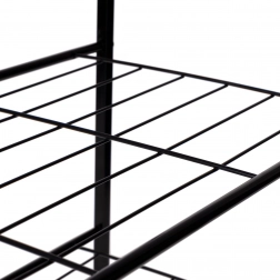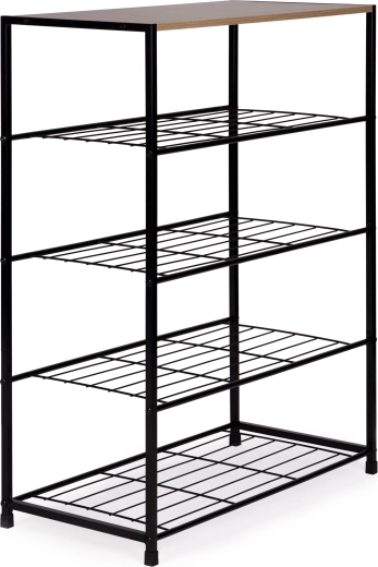 A masszív fekete váz hosszú élettartamot és stabilitást biztosít még teljes terhelés mellett is. A szellős rácspolcok támogatják a légáramlást és a cipők gyors száradását.