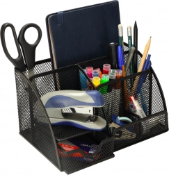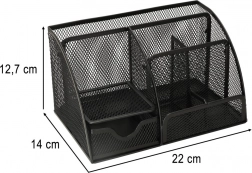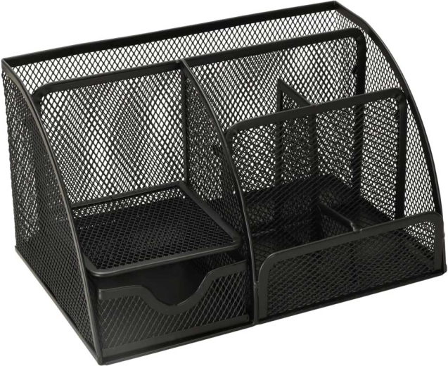 A tartós, fekete fémháló elegáns megjelenésű, azonnali áttekintést nyújt az elhelyezett tárgyakról, és remekül illik irodába, otthoni dolgozószobába vagy diákszobába. A rendszerezőt használhatja kozmetikumokhoz, sminkecsetekhez vagy apró szerszámokhoz is.