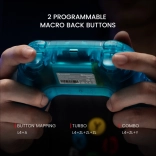 A három csatlakozási mód – Bluetooth, 2,4 GHz dongle-lel és USB‑C kábellel – stabil, késleltetésmentes kapcsolatot biztosít. A markolatokban található kettős rezgőmotorok felerősítik minden robbanás, ütközés vagy egyenetlen felületen való haladás élményét. Nem hiányoznak a programozható hátsó makrógombok a gyors kombókhoz és a pontos mozgásérzékelés a még nagyobb immerszióért.