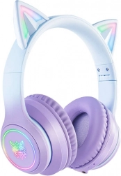 A kék és lila ONIKUMA B90 játék fejhallgató tökéletes választás mindazoknak, akik szeretik a játékokat és a stílusos megjelenést. Bluetooth 5.0 kapcsolattal, beépített vezérlőpanellel és világítós macska fülekkel rendelkezik, amelyek vidám hangulatot teremtenek. Az összecsukható kialakítás révén könnyen tárolható táskában vagy hátizsákban.