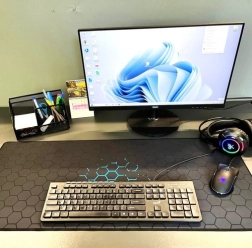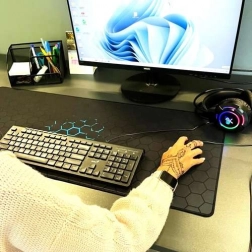 ASZTALVÉDELEM ÉS STÍLUSOS DIZÁJN- A nagy méretű pad megvédi az asztalta karcolásoktól, kopástól és egyéb sérülésektől, amelyek a mindennapi használat során keletkezhetnek. Óvja az asztal felületét a leggyakrabban használt területeken a túlzott elhasználódástól.A modern dizájn és a „méhsejt” minta elegáns, korszerű megjelenést kölcsönöz, amely feldobja a munkaállomás vagy a gamer sarok esztétikáját.