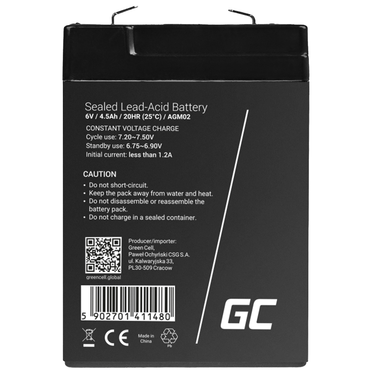 A Green Cell VRLA AGM 6V 4,5Ah akkumulátor megbízható megoldást nyújt a stabil áramellátáshoz. Kiegyenlítő és ciklikus üzemet is biztosít, ami azt jelenti, hogy működhet tartalék áramforrásként áramkimaradás esetén és önálló áramforrásként hordozható eszközökhöz és játékokhoz.