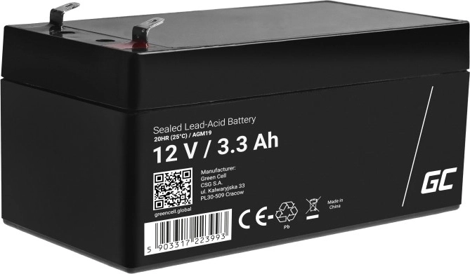 A kompakt, AGM VRLA technológiájú, GREEN CELL gyártmányú, 12 V feszültségű és 1,3 Ah kapacitású karbantartásmentes akkumulátor ideális riasztókhoz, pénztárgépekhez, játékokhoz és tartalék tápegységekhez. Az AGM technológia biztonságos működést több pozícióban, alacsony önkisülést és 5+ év élettartamot biztosít.