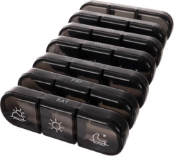 Átlátható napi elosztás: Mind a hét rekesz három különálló kamrára van osztva reggeli, déli és esti adagokra. Mindegyik kamra szilárdan záródik egy kattanással, ami biztosítja a gyógyszerek biztonságos tárolását.