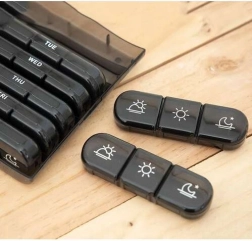 Mindegyik rekesz könnyen kivehető a gyógyszerek otthonon kívüli használatához.