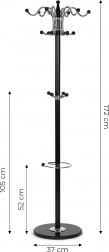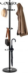Az elegáns ModernHome álló ruhafogas ideális előszobába, irodába és gardróbba. Stabil fém szerkezetet, nehéz kő talapzatot a felborulás elkerüléséhez, összesen 16 akasztót kabátokhoz, táskákhoz és gyerekdzsekikhez, valamint praktikus esernyőtartó spirált kínál. Modern dizájnja remekül illik bármely belső térhez.