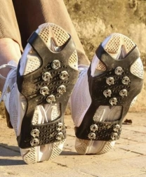 A csúszásgátló felhúzható tappancsok növelik a lépések biztonságát téli körülmények között, városban és könnyebb terepen is.