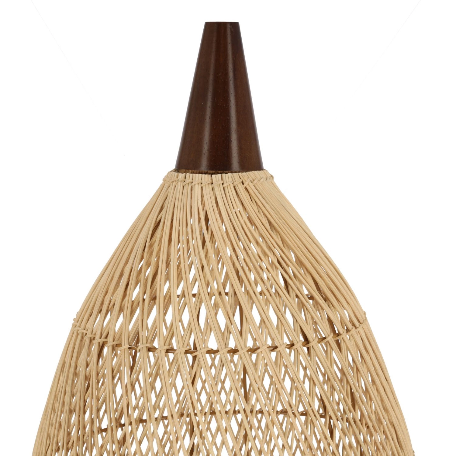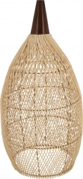 A természetes rattan a fa nyakkal együtt légies, könnyed megjelenést kölcsönöz, amely szépen szórja a fényt és dekoratív árnyékokat rajzol. A 35 cm átmérő és 70 cm magasság feltűnő, mégis harmonikus elemmé teszi az étkezőasztal, a dohányzóasztal vagy az éjjeliszekrény fölött.