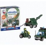 A Cheva Motorota építőkészlet ideális választás a gyerekek kreativitásának és kézügyességének fejlesztésére katonai motívumokkal. Tartalmaz egy katonai ágyút, egy terepjáró autót, egy motorkerékpárt és két katonai figurát.
