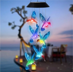 .A napelemes kolibri lámpa egy egyedülálló LED fény, amely varázslatos hangulatot kölcsönöz bármely balkonon, teraszon, kertben vagy helyiségben. A napenergia felhasználásának köszönhetően ezek a harangok sötétedés után automatikusan felkapcsolnak, és a piros, narancs, kék, sárga és lila színek között váltakoznak, varázslatos fényhatást teremtve.