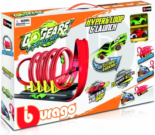 Bburago GoGears Extreme autópálya: 6 hurok, rámpa, 2 gyors kisautó és akár 25 m hatótáv. Tartozék pontozott céltábla. Akciódús versenyzős szórakozás gyerekeknek.
